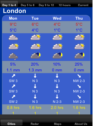 Les applications de WeatherOnline pour iPhone et iPod touch sont disponibles dans le magasin iPhone App.